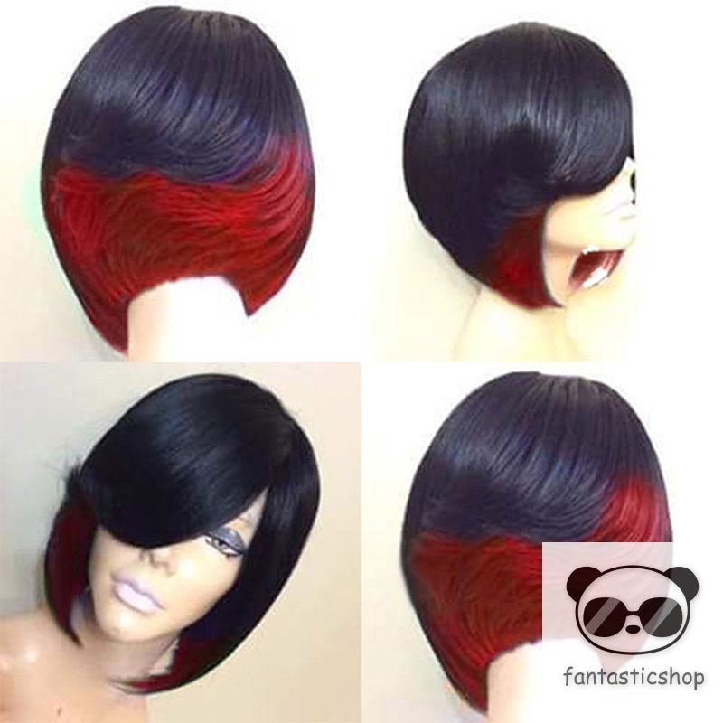 Wig/Rambut Palsu Bob Pendek Lurus Poni Samping Bahan Sintetis Highlight untuk Wanita | Shopee Indonesia