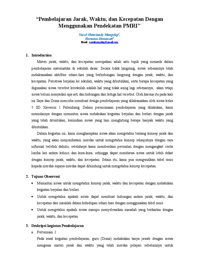 Pembelajaran Jarak Waktu Dan Kecepatan Dengan Menggunakan Pendekatan Pmri1