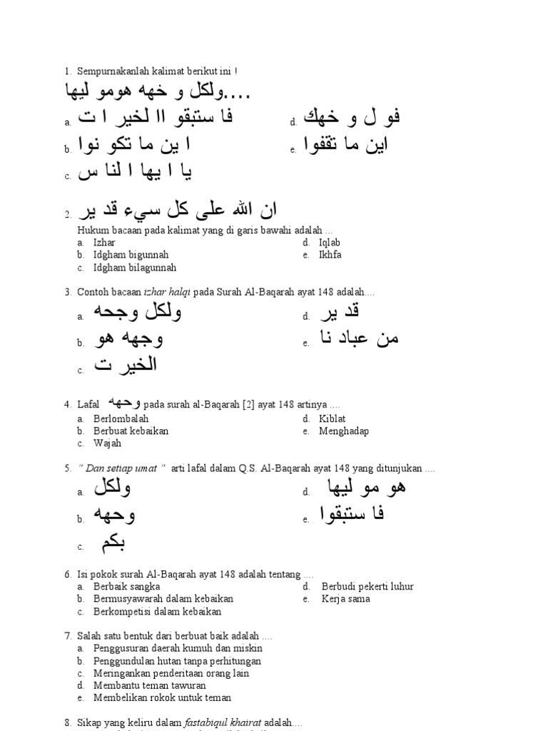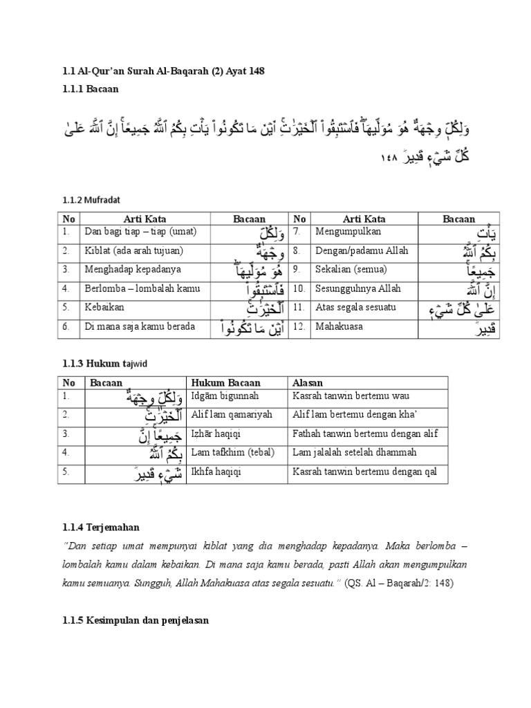 Hukum Tajwid Surat Al-Baqarah Ayat 148 Penjelasan Lengkap