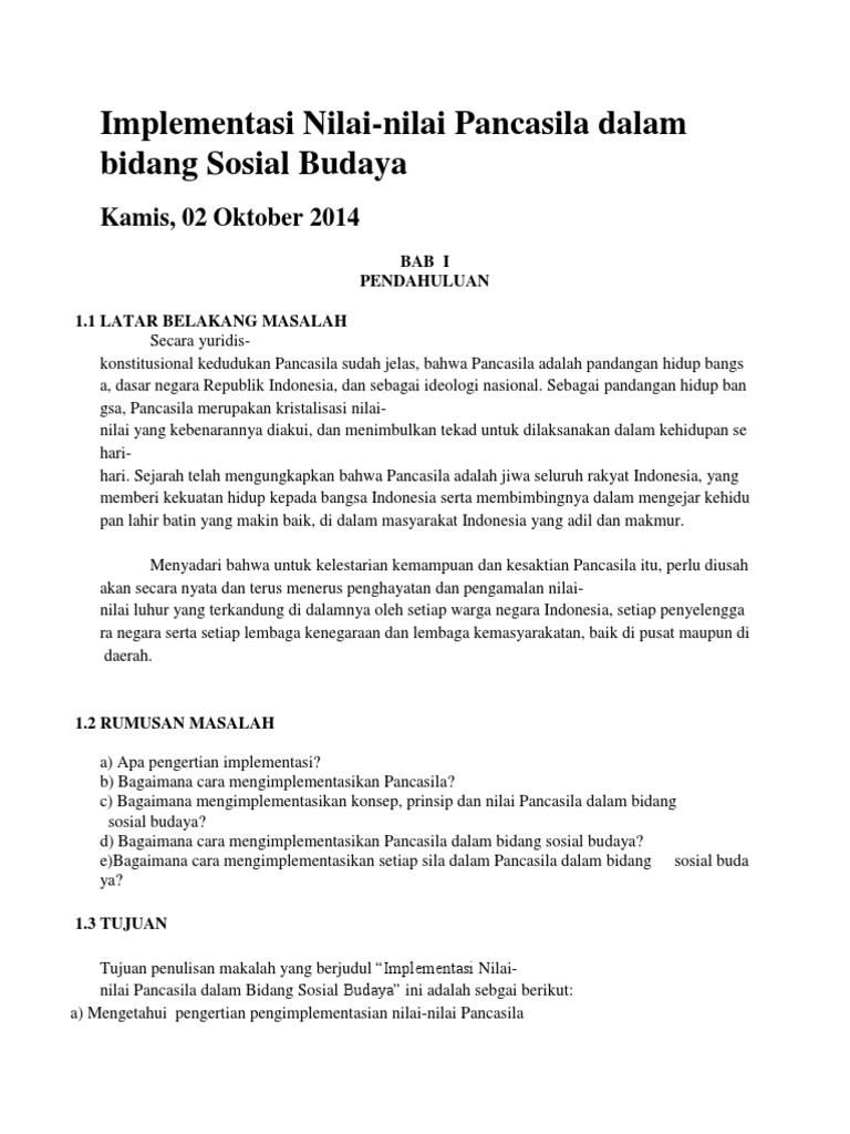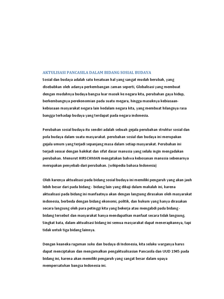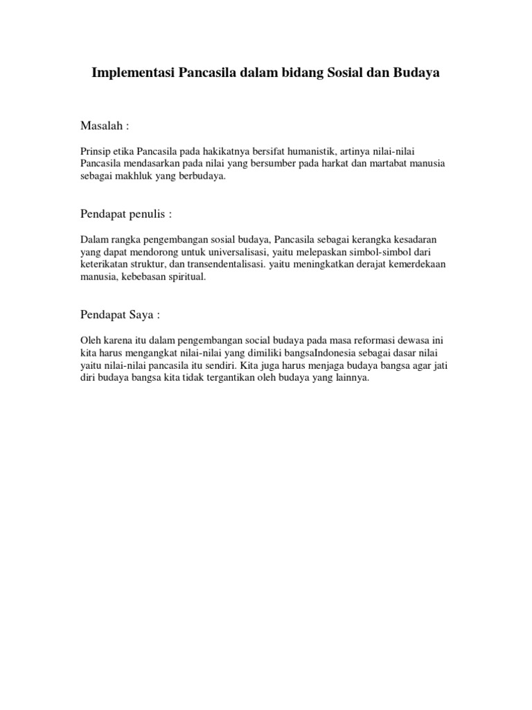 Perwujudan Nilai Nilai Pancasila Dalam Bidang Sosial Budaya …