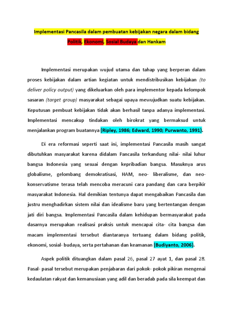 DOC) Implementasi Pancasila Dalam Pembuatan Kebijakan Negara Dalam …