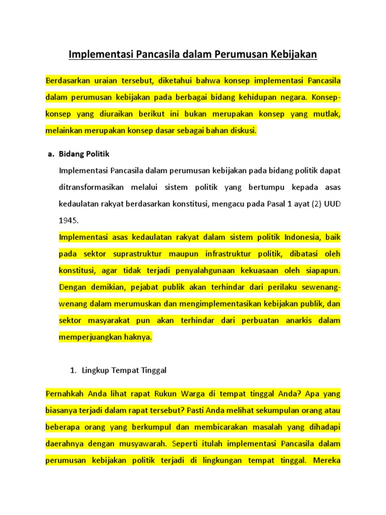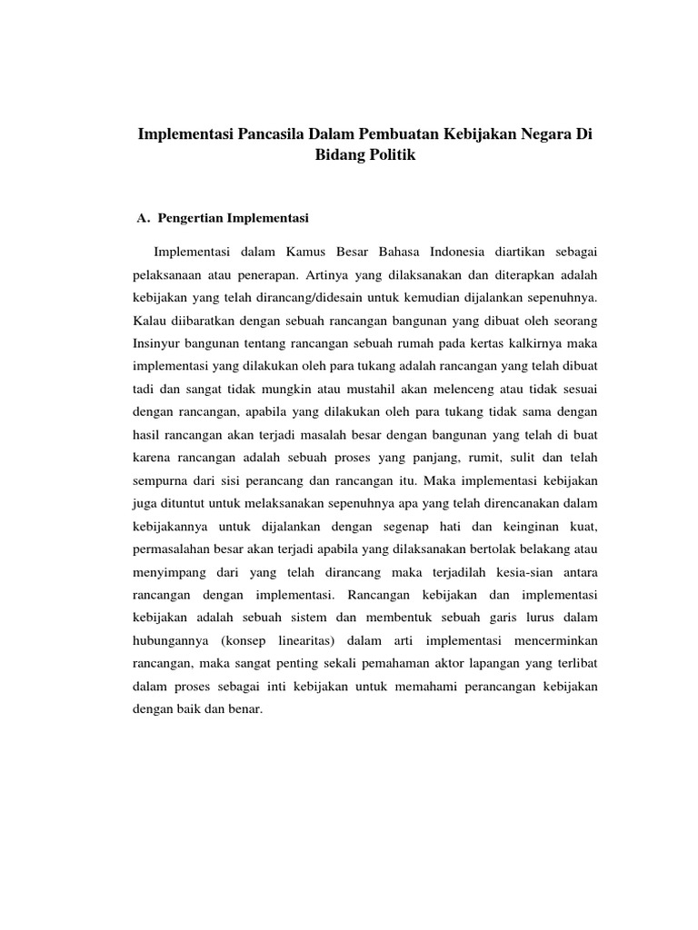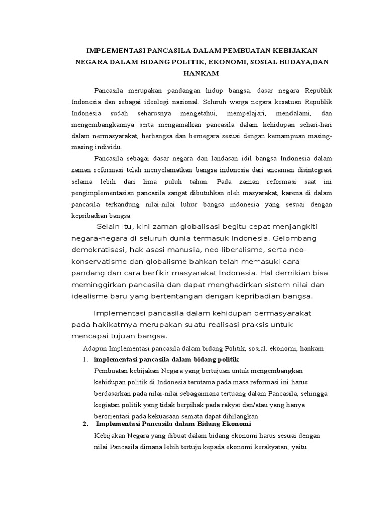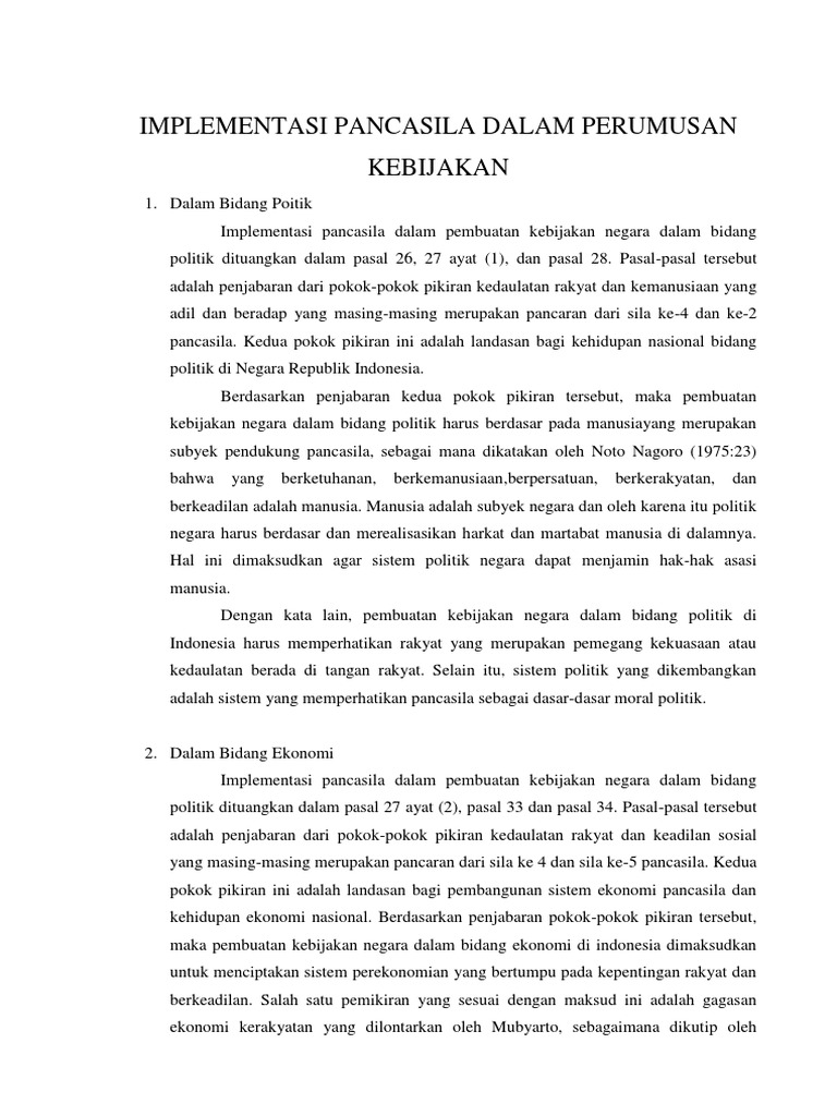 DOC) IMPLEMENTASI PANCASILA DALAM PEMBUATAN KEBIJAKAN NEGARA DALAM …