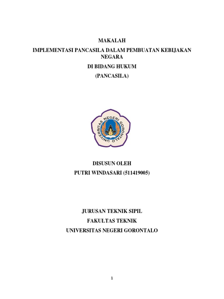Judul : IMPLEMENTASI PANCASILA DALAM KEBIJAKAN NEGARA DIBIDANG …