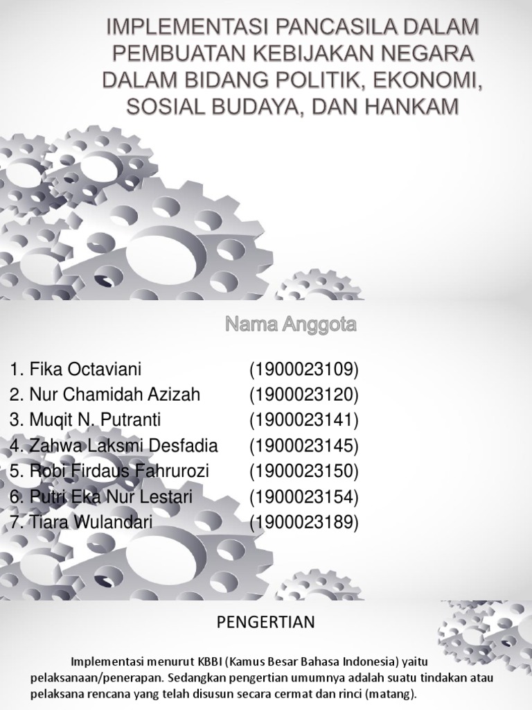IMPLEMENTASI PANCASILA DALAM PEMBUATAN KEBIJAKAN NEGARA.pptx …