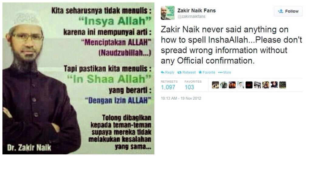 Hoax Dr. Zakir Naik soal Penulisan Insya Allah atau In Shaa Allah …