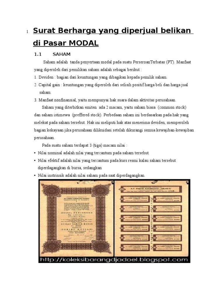 di Pasar MODAL 1. Surat Berharga yang diperjual belikan - PDF Free Download