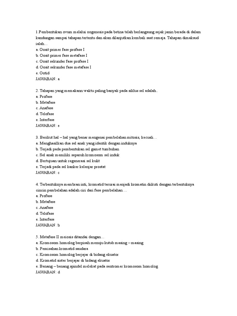 Soal Pembelahan Sel