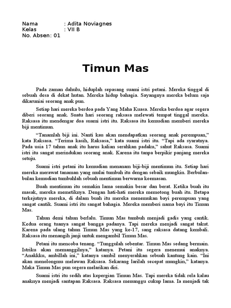 Narrative Text : Cerita Timun Mas Dalam Bahasa Inggris Beserta …