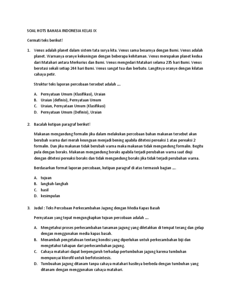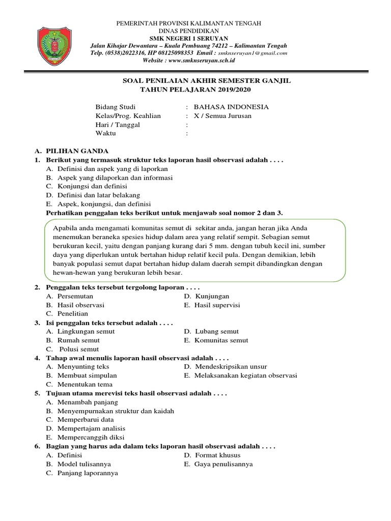 SOAL BAHASA INDONESIA PILIHAN BERGANDA KELAS X | by Chairani Siregar | Medium