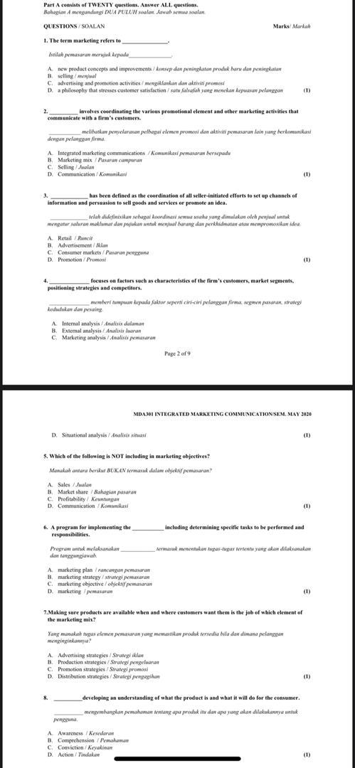Solved: B Part A Consists Of TWENTY Questions. Answer ALL … | Chegg.com