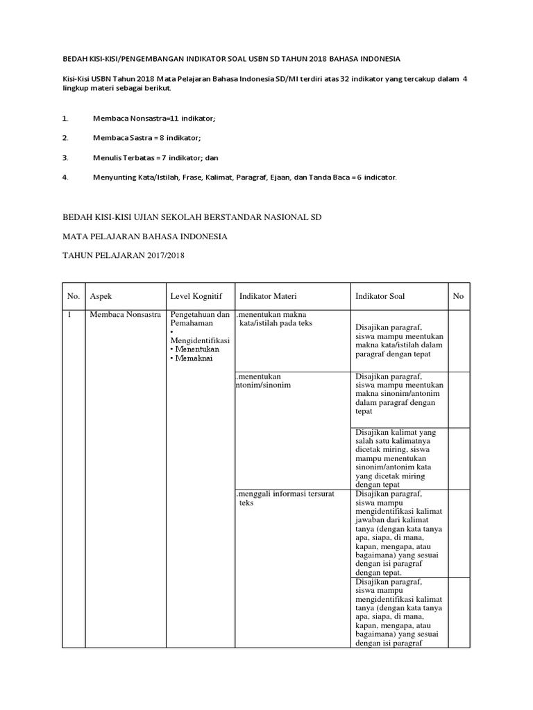 Kisi-kisi Soal US SD/MI Tahun 2017 | Informasi Pendidikan dan Dunia Kerja