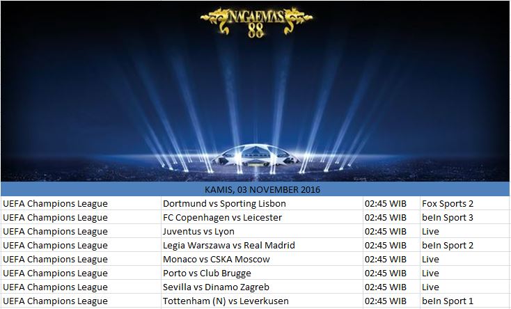 Nagaemas88 on Twitter: “Jadwal Liga Champion 03 November 2016 …
