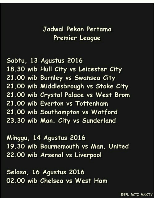 Jadwal EPL Matchday 1, TVRI gets 2 game per week. : indonesia