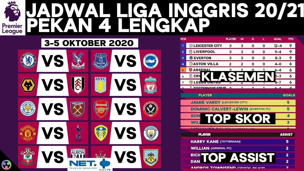 Jadwal Lengkap Siaran Langsung Liga Inggris 2020-21 Pekan 15 di Net TV dan Klasemen Terbaru EPL - YouTube