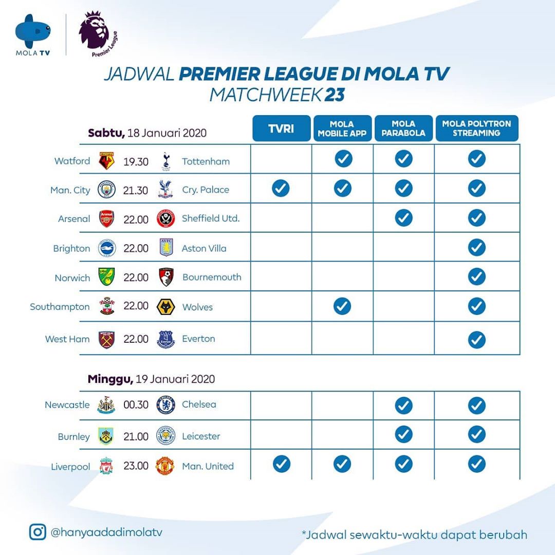 Jadwal Siaran Langsung Premier League Pekan ke-23