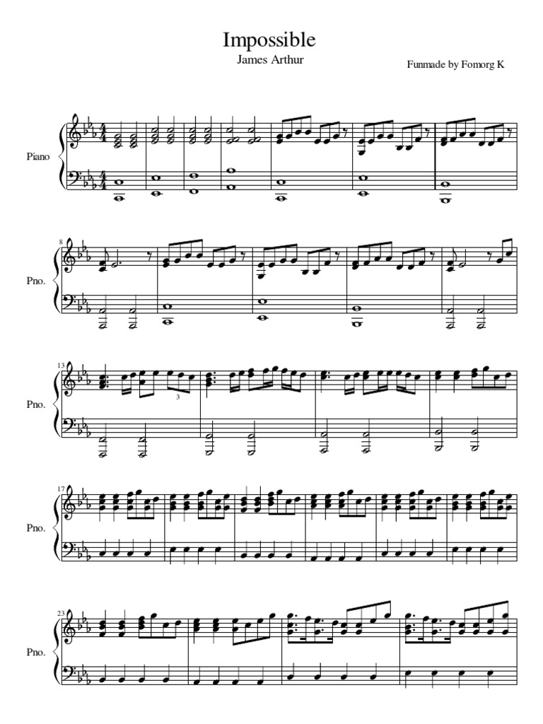 James Arthur “Impossible” Sheet Music in C Minor (transposable …