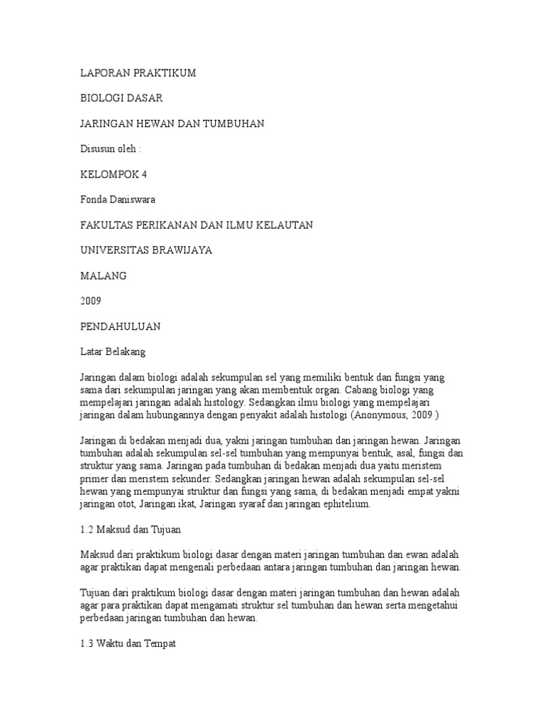 STRUKTUR SEL DAN FUNGSI JARINGAN PADA TUMBUHAN – Laporan praktikum