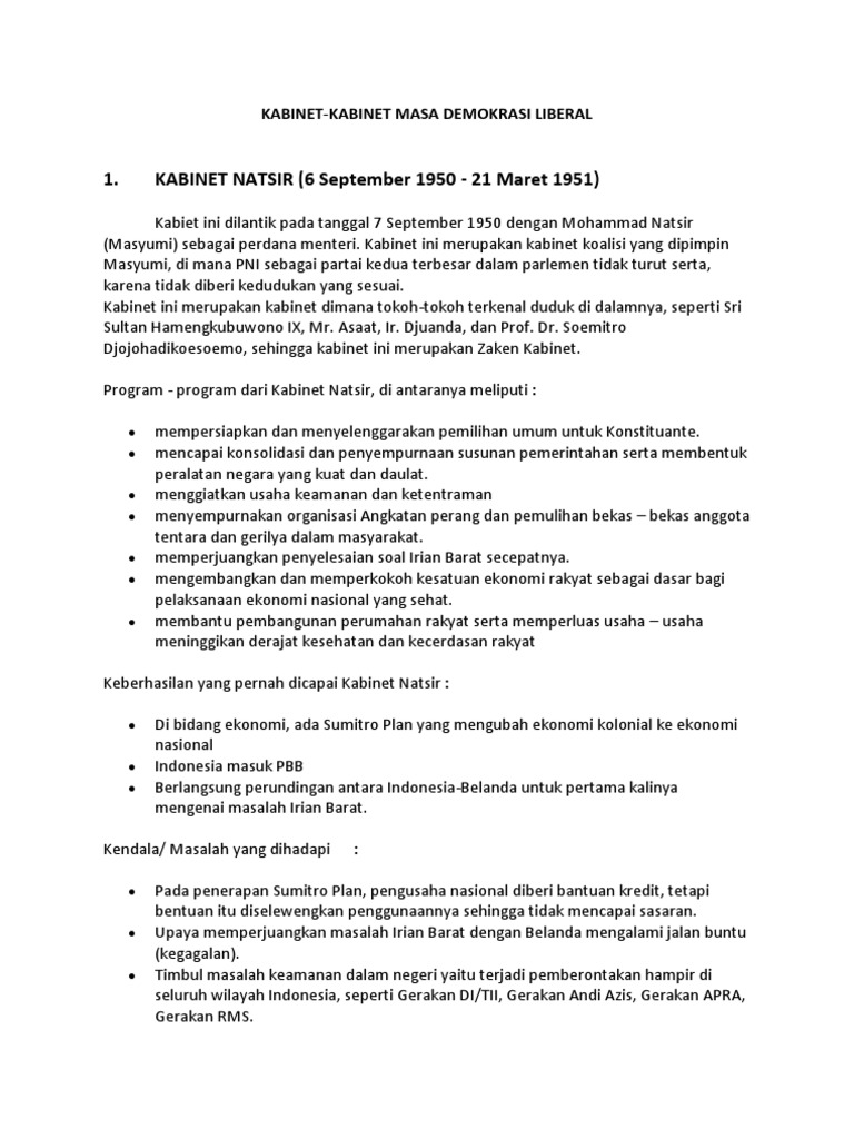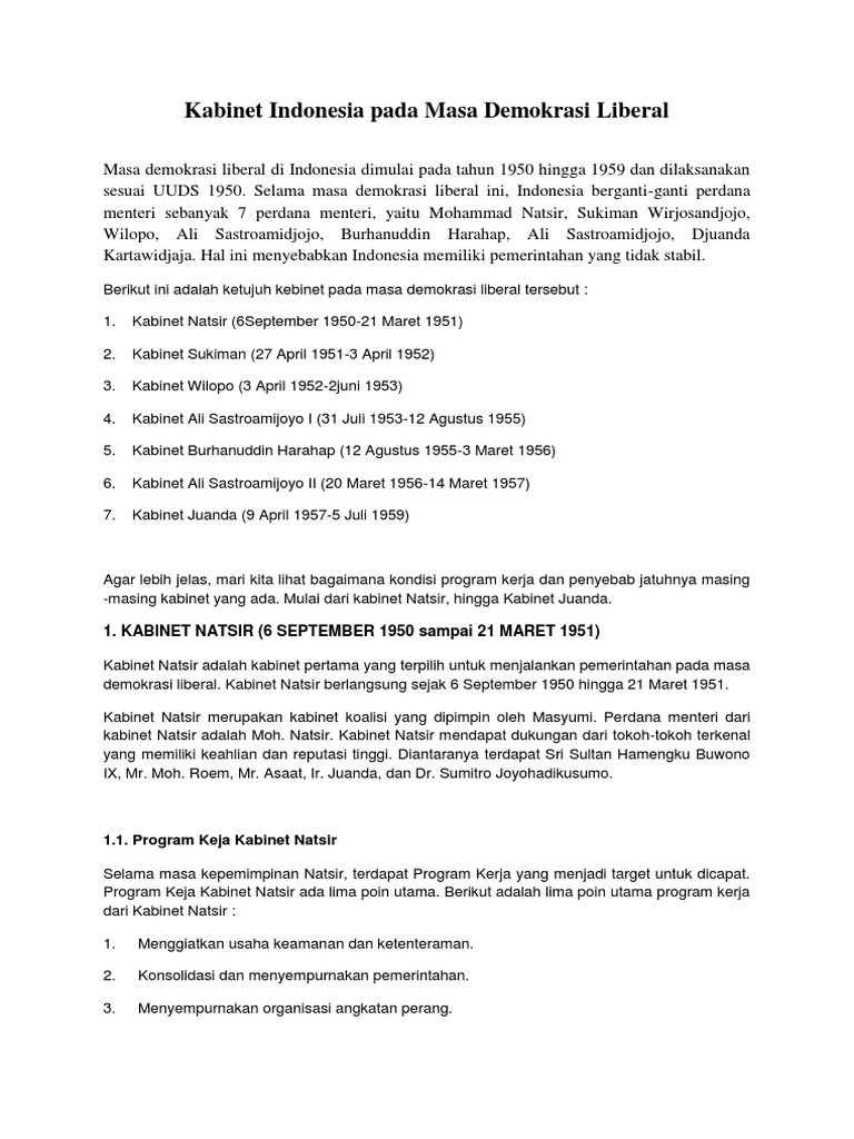 DOC) KABINET-KABINET DI INDONESIA PADA MASA DEMOKRASI LIBERAL | Riza Satria - Academia.edu