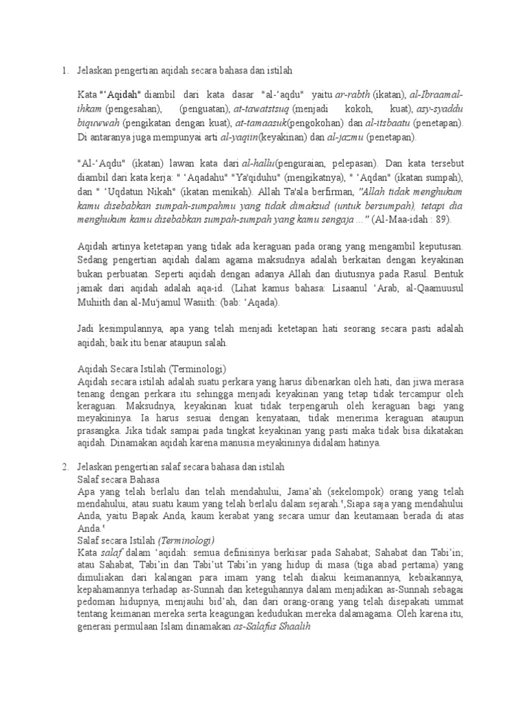 Jelaskan Pengertian Aqidah Secara Bahasa Dan Istilah