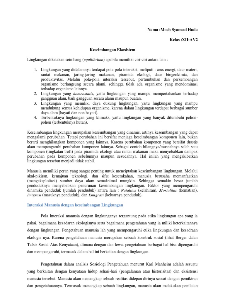 A. Pengaruh Kegiatan Manusia terhadap Keseimbangan Ekosistem - PDF …