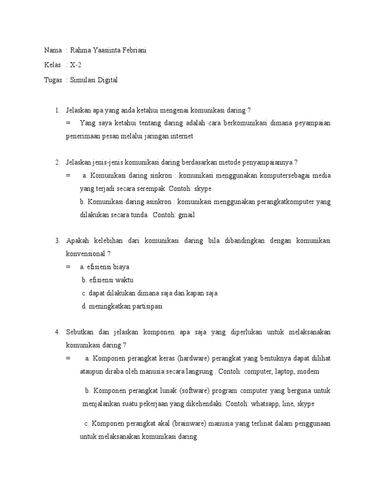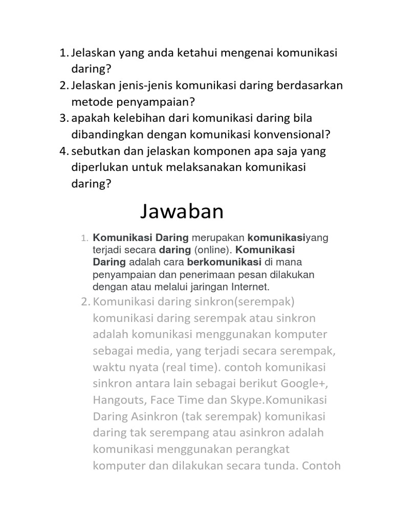 Jawaban: Komunikasi Daring merupakan komunikasiyang Daring …