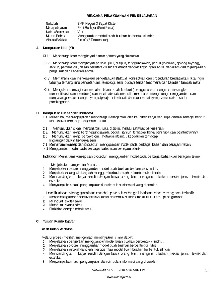 Rpp Seni Budaya Smp Kelas 8 Semester 1-Smpn 3 Bayat Klaten