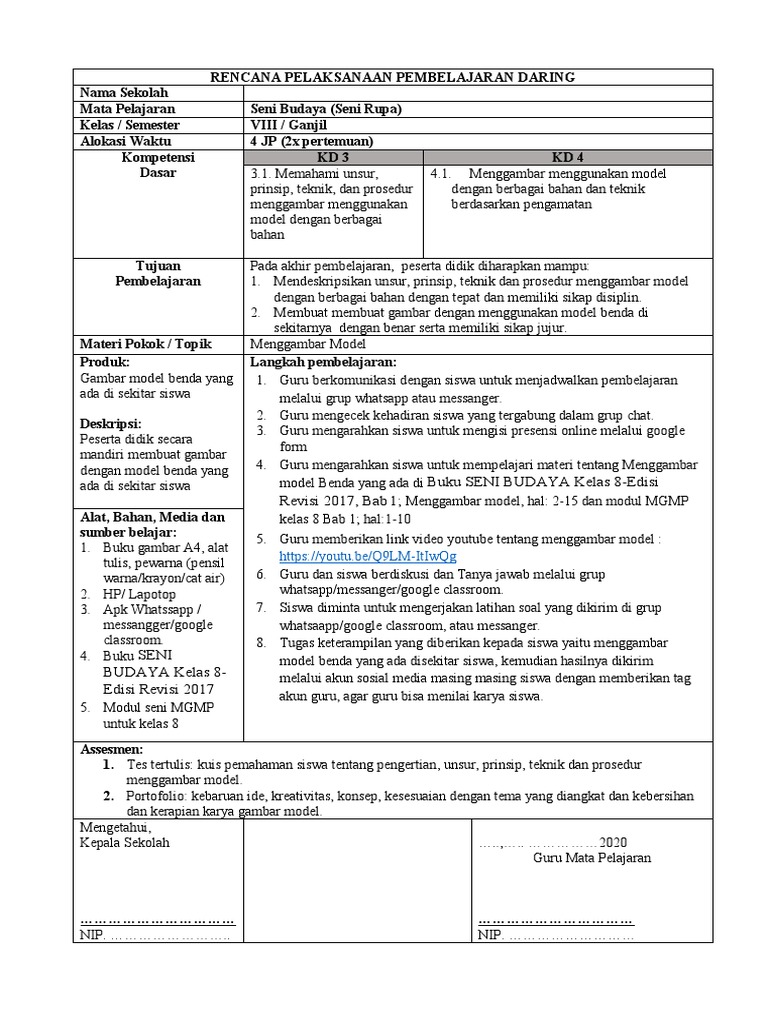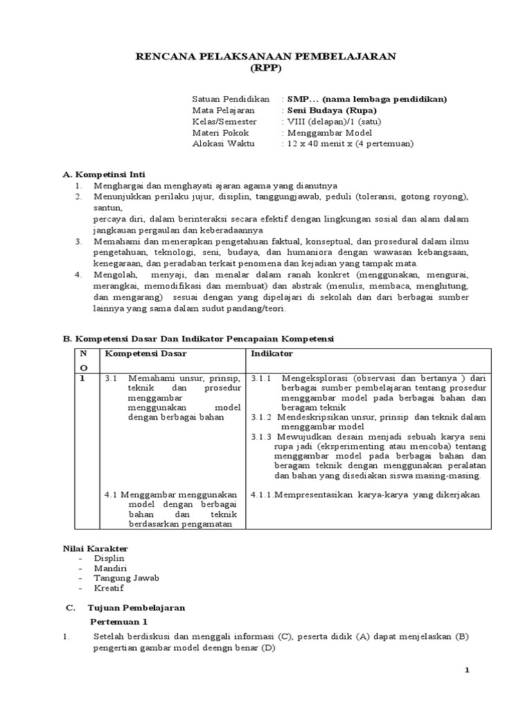 DOC) RPP Ke-1 Seni Rupa kls VIII sem 2.docx | yogie cancers …