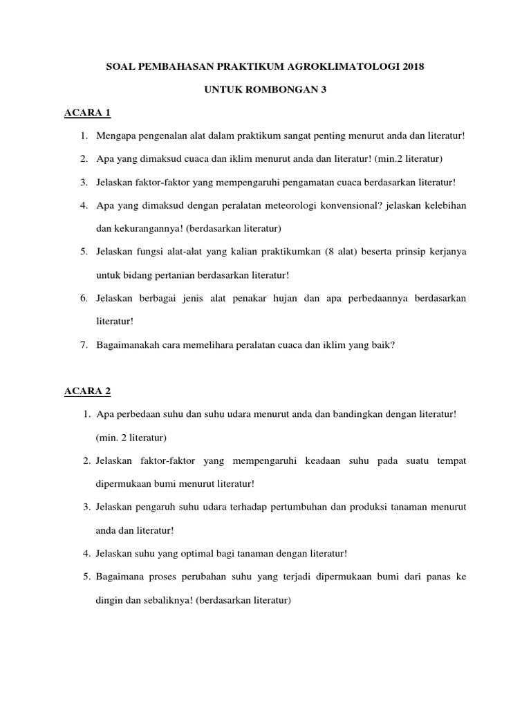 SOAL PEMBAHASAN PRAKTIKUM AGROKLIMATOLOGI 2018.docx