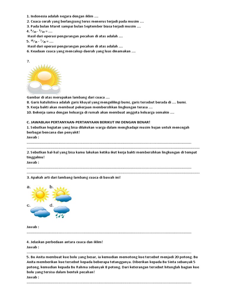 Soal Tematik Kelas 3 SD Tema 5 Subtema 4 Cuaca, Musim dan Iklim …