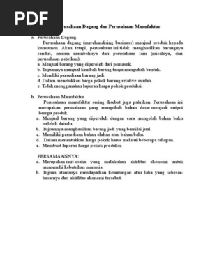 Jelaskan perbedaan karakteristik perusahaan jasa, dagang, dan manufaktur. Selanjutnya, terdapat - Brainly.co.id