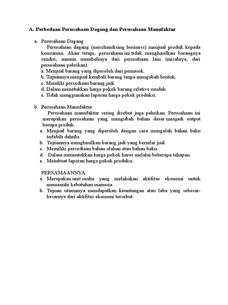 Perbedaan Perusahaan Dagang Dan Perusahaan Manufaktur