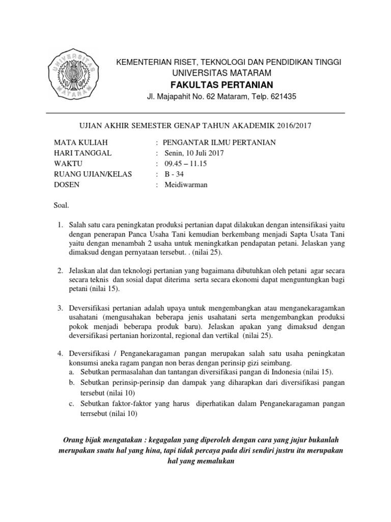sebutke 5 panca usaha tani! - Brainly.co.id
