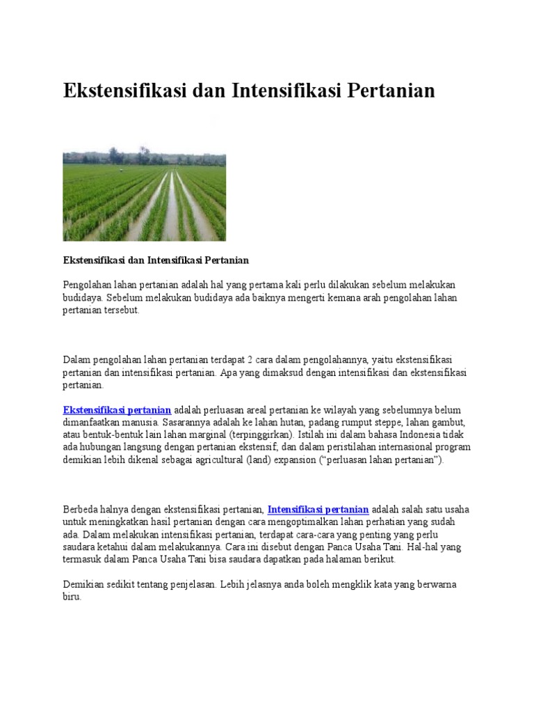 Ekstensifikasi dan Intensifikasi Pertanian | DSTKR
