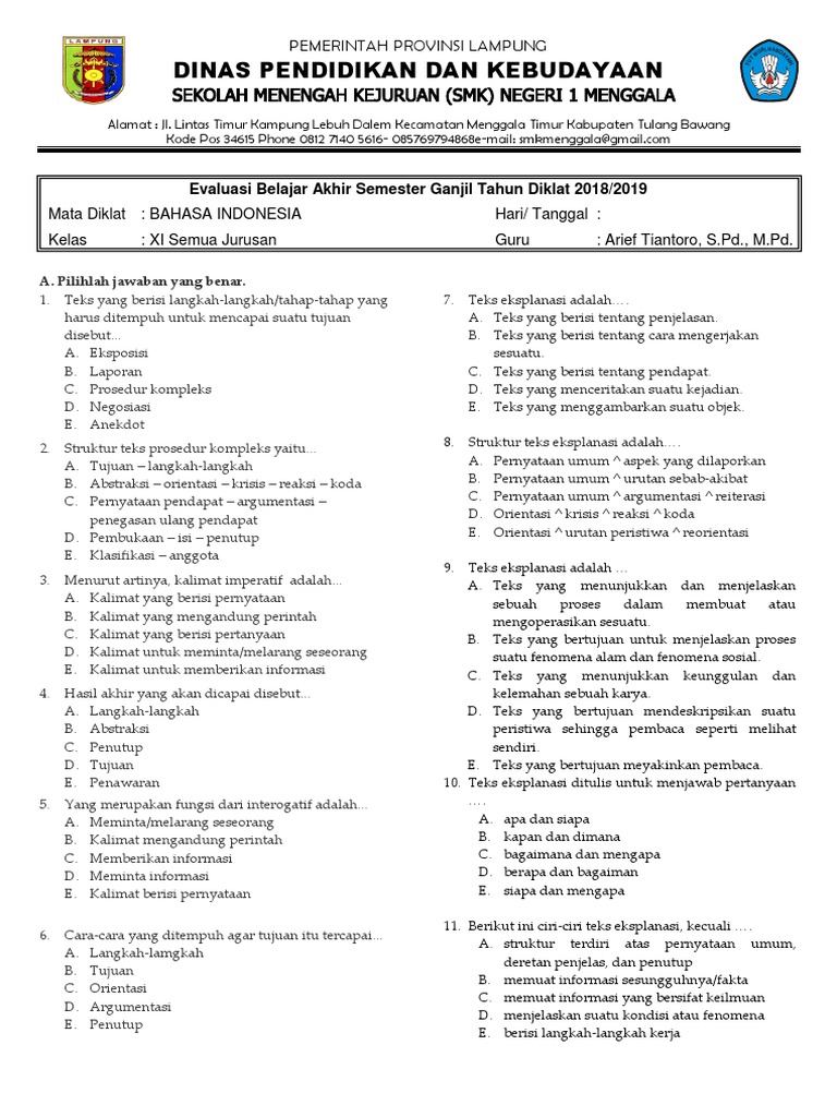 Contoh Soal Materi Teks Laporan Hasil Percobaan (Kelas IX) - PELAJARAN BAHASA INDONESIA DI JARI KAMU