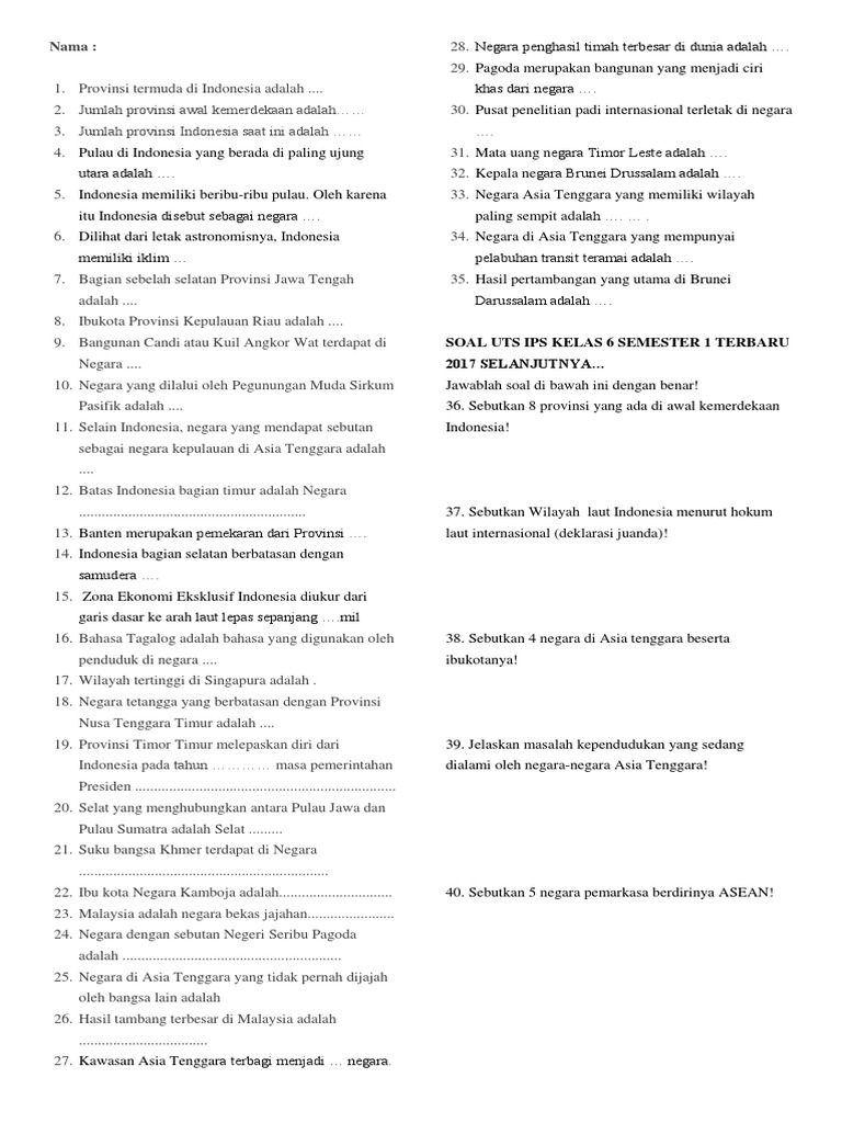 Soal Kelas 6 Niken