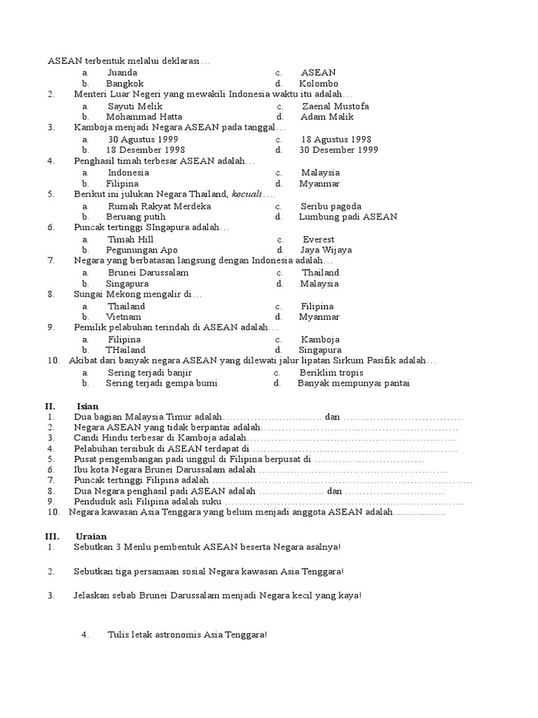 Soal Tentang Asean