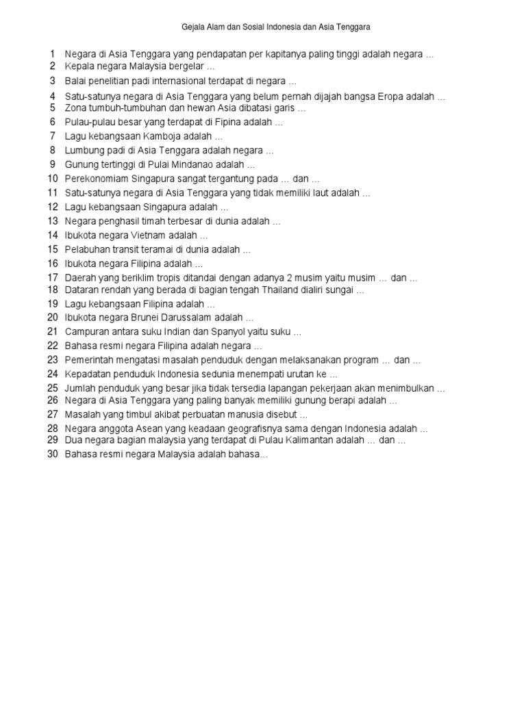Pertanyaan :1. Sebutkan persamaan geografis negara negara ASEAN!2 …