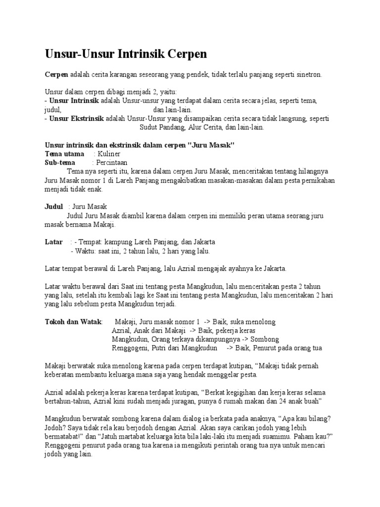 √ Sinopsis dan Membedah Struktur Teks Cerpen Juru Masak