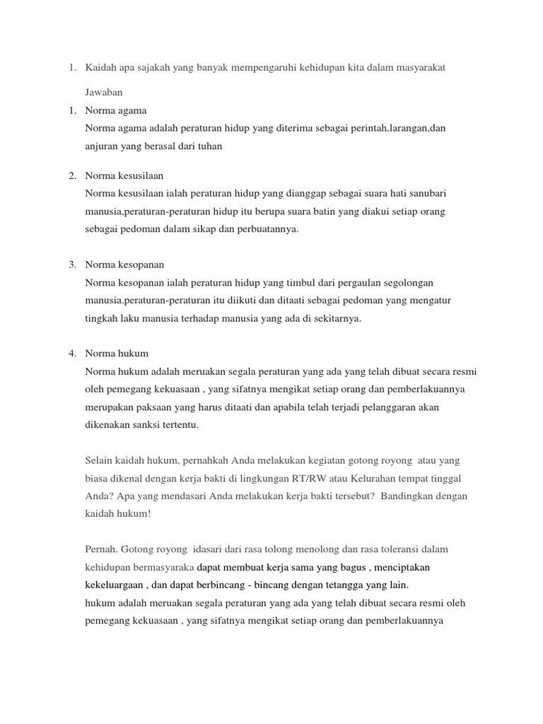 Kaidah Apa Sajakah Yang Banyak Mempengaruhi Kehidupan Kita Dalam Masyarakat