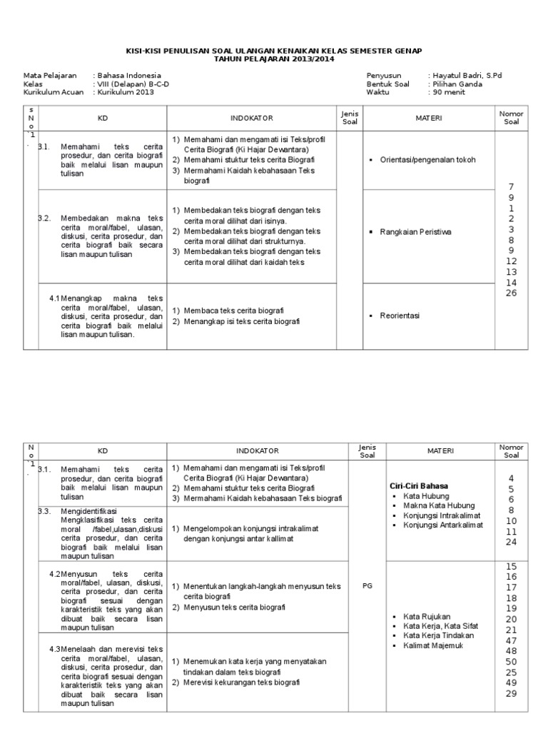 Kisi-Kisi Penulisan Soal Ulangan Kenaikan Kelas Semester Genap …