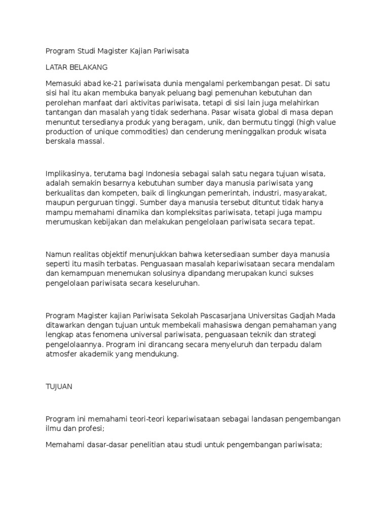 Program Studi Magister Kajian Pariwisata | Pendidikan …