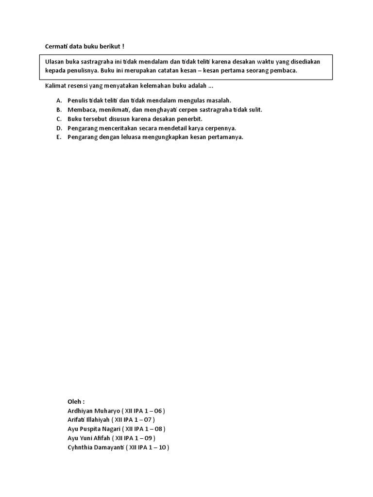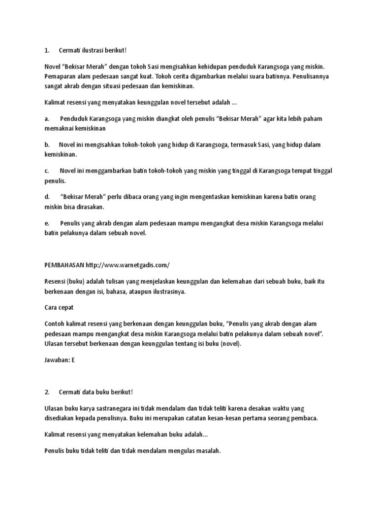 SOAL SMA | Menentukan Kalimat Resensi - PELAJARAN BAHASA INDONESIA …