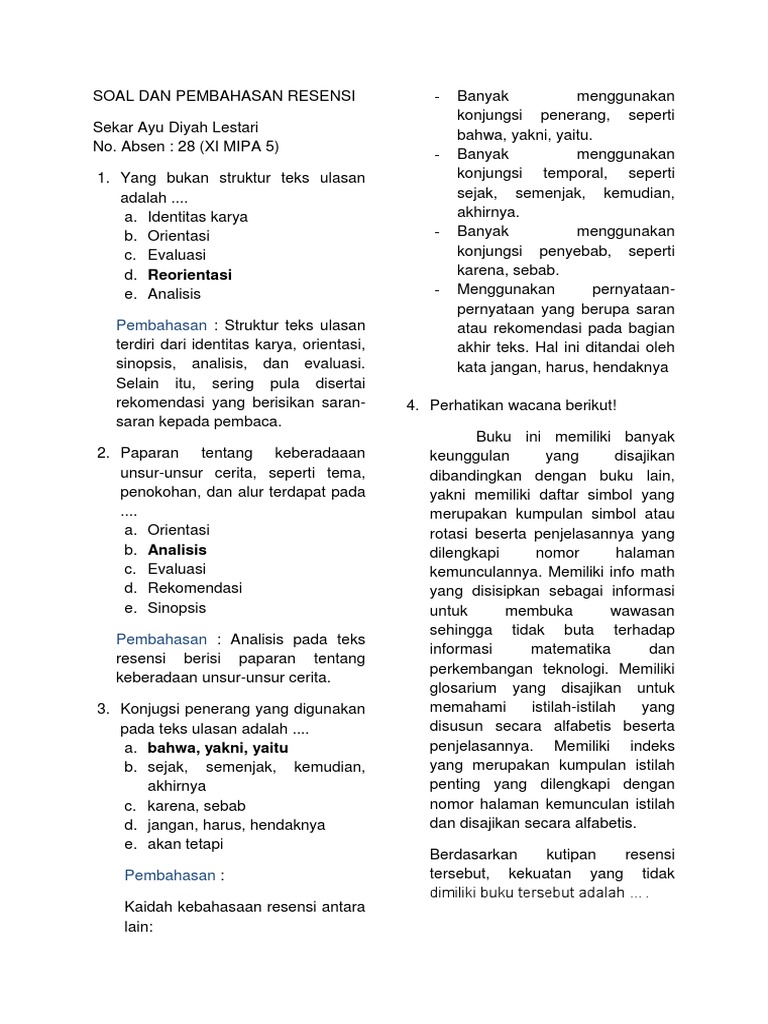 Soal Resensi dan Pembahasan