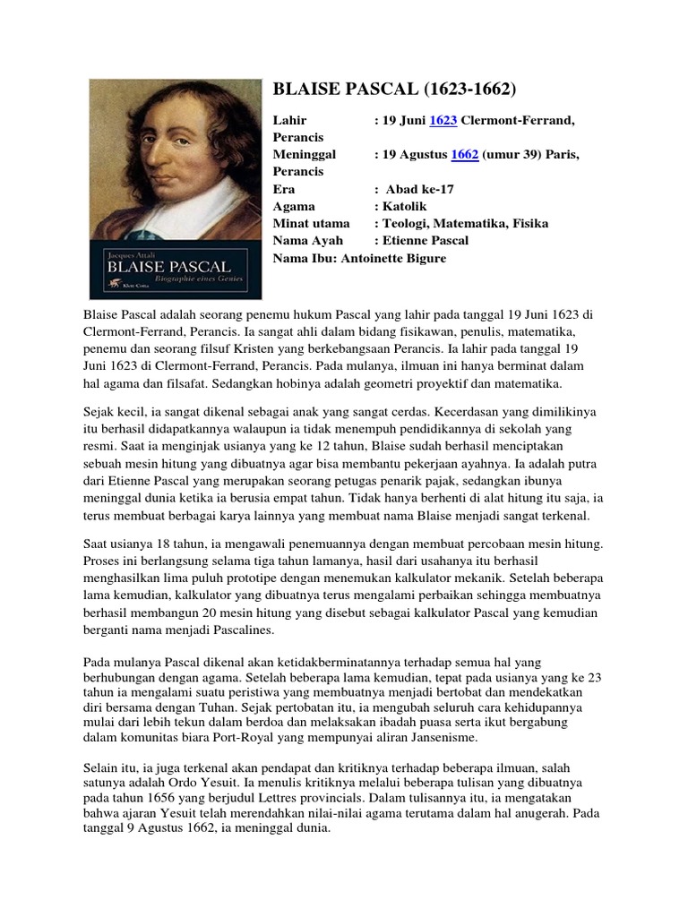 √ Biografi Blaise Pascal - Penemu kalkulator dan Hukum Pascal - Izbio