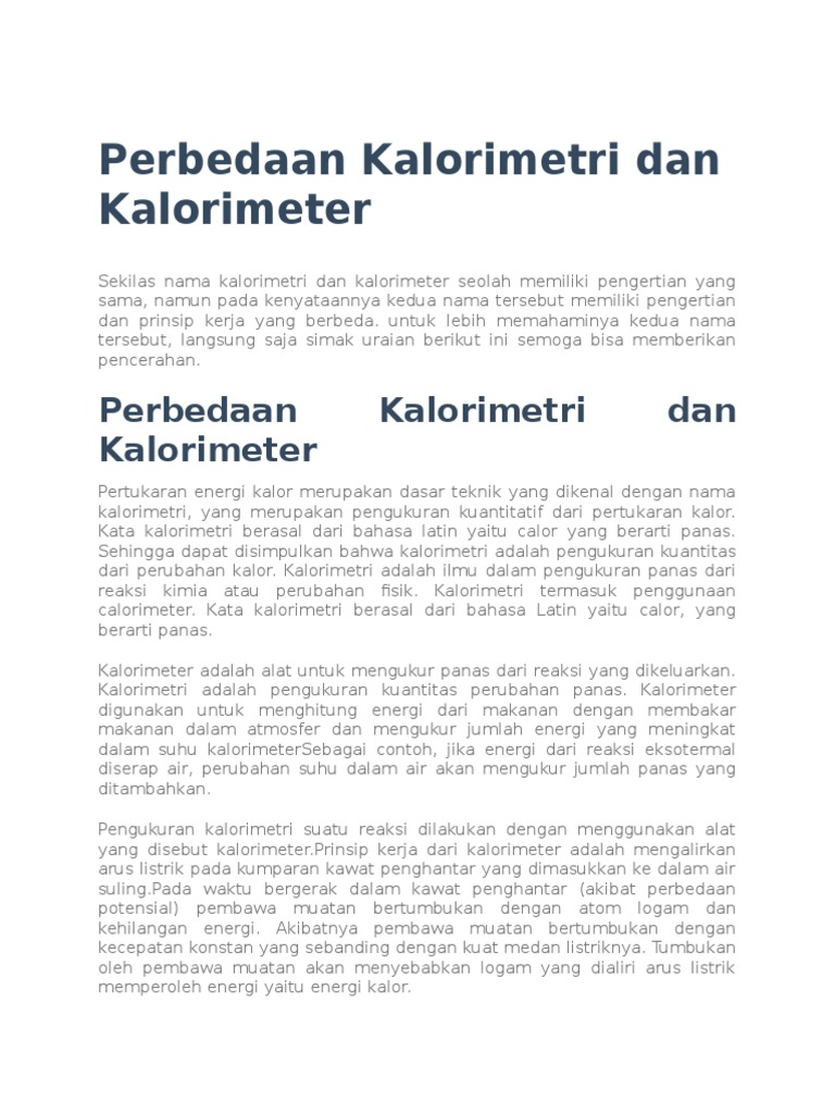 Perbedaan Kalorimetri Dan Kalorimeter