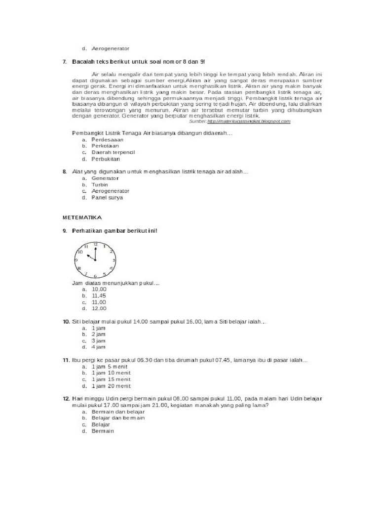 Soal PTS kelas 3 Tema 6 Semester 2 Tahun 2019 beserta Kunci Jawaban - Info Pendidikan Terbaru