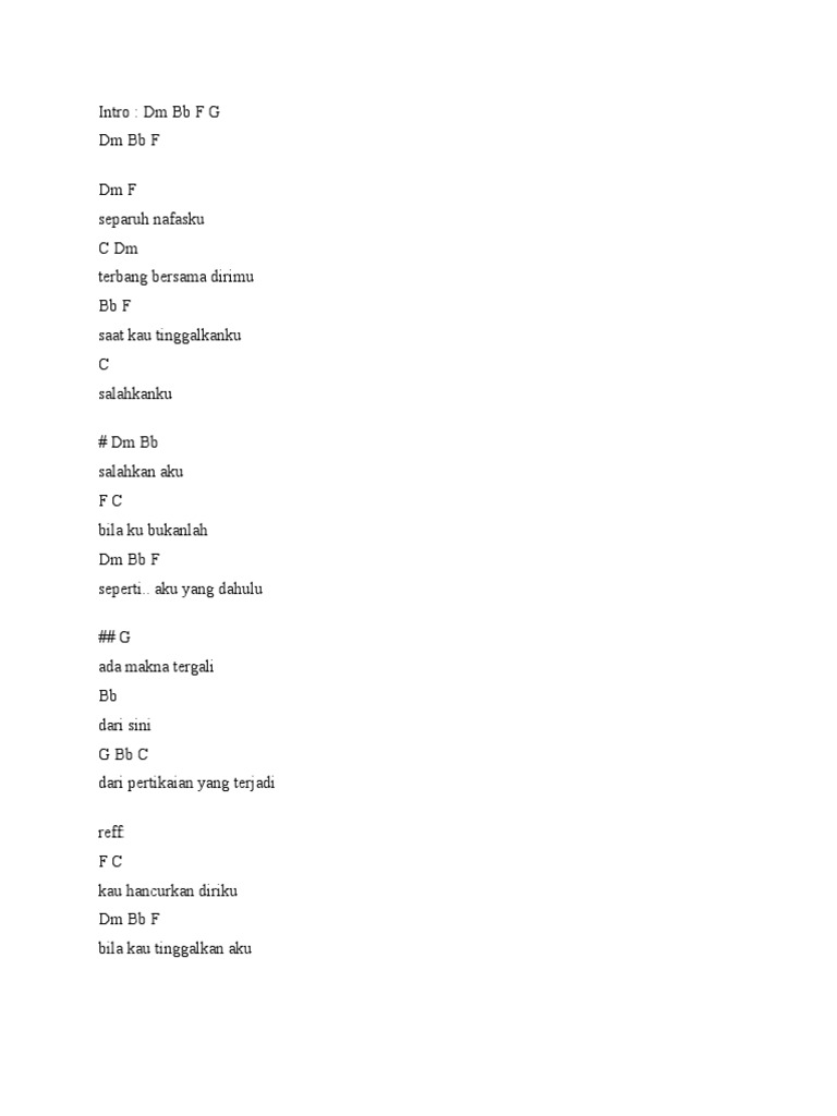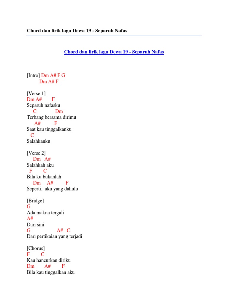 Chord Separuh Nafas - Dewa 19: Separuh Nafasku Terbang Bersama …