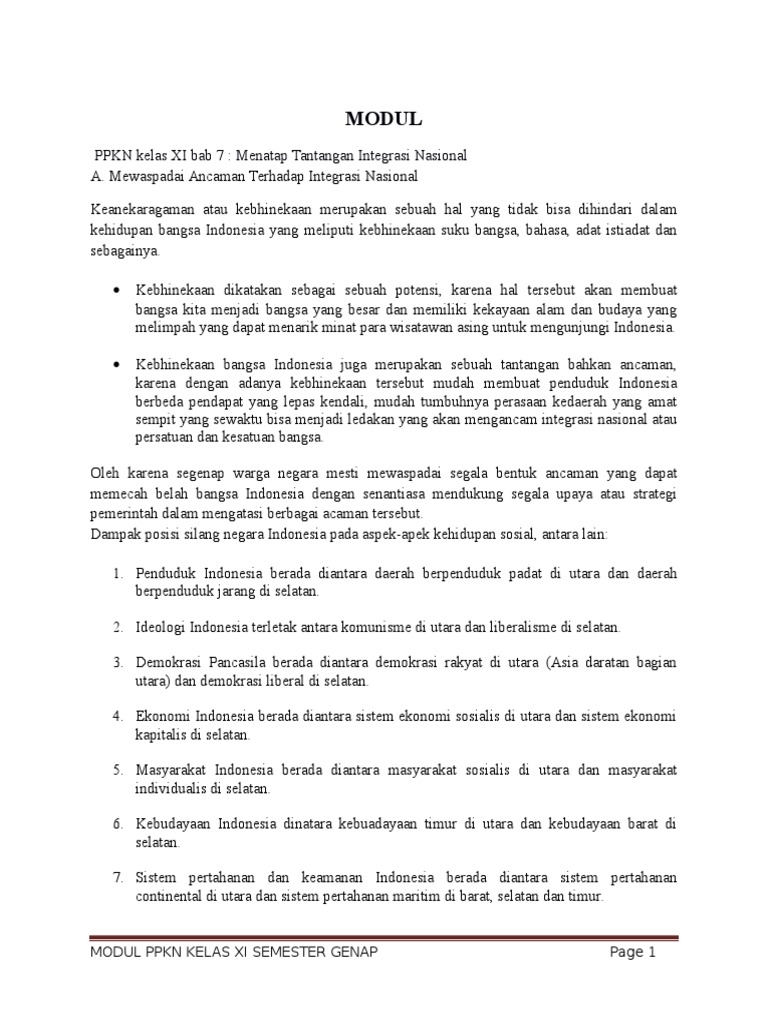 SMA 11 – PKN – Bab 7 – Menatap Tantangan Integrasi Nasional – Free …