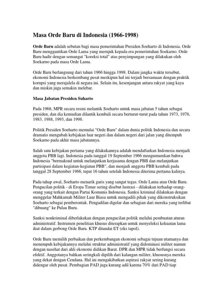 Soal UAS Sejarah Indonesia: Pemerintahan Orde Baru Halaman all …