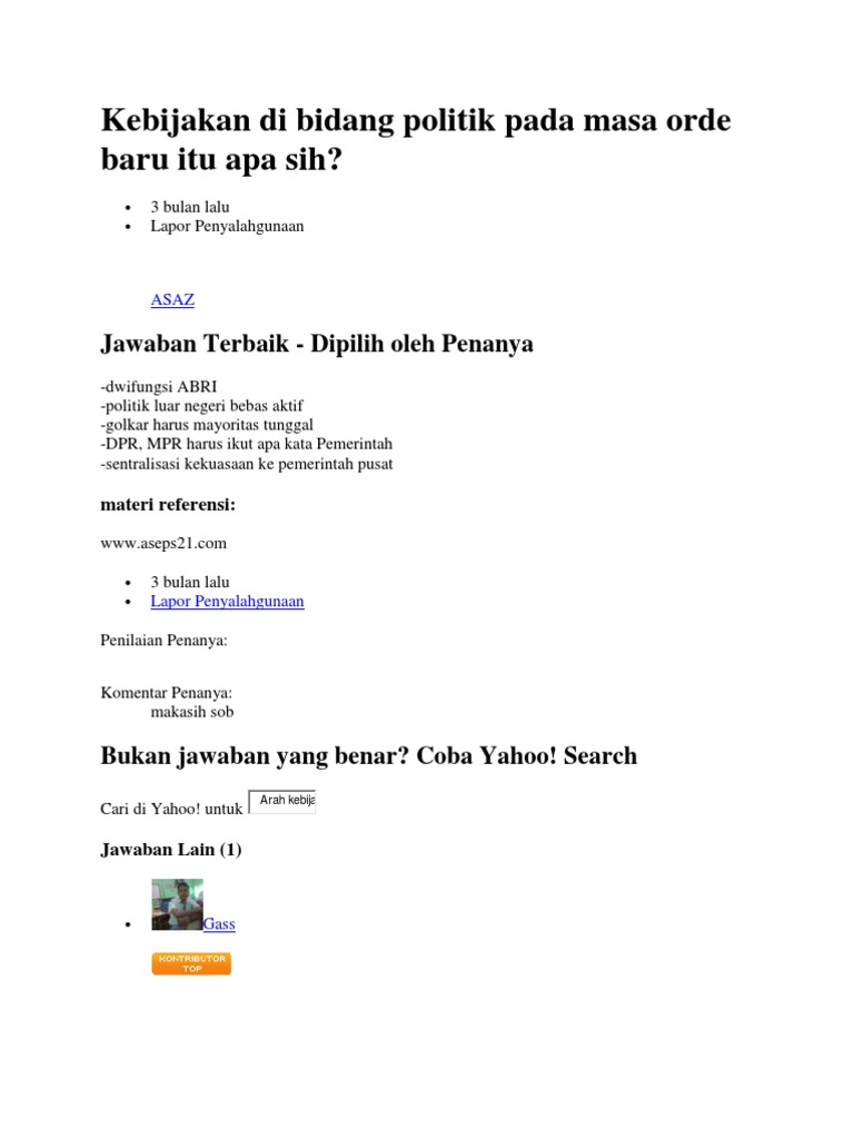 Kebijakan Di Bidang Politik Pada Masa Orde Baru Itu Apa Sih